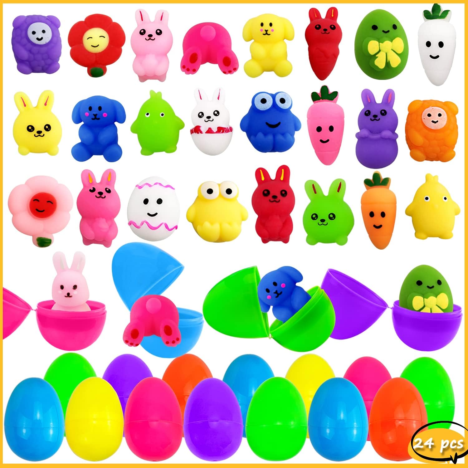 24Pcs Squishy Toys with 24Pcs Easter Eggs , Easter. Ideal for Toys & Games > Novelty & Gag Toys > Miniatures.