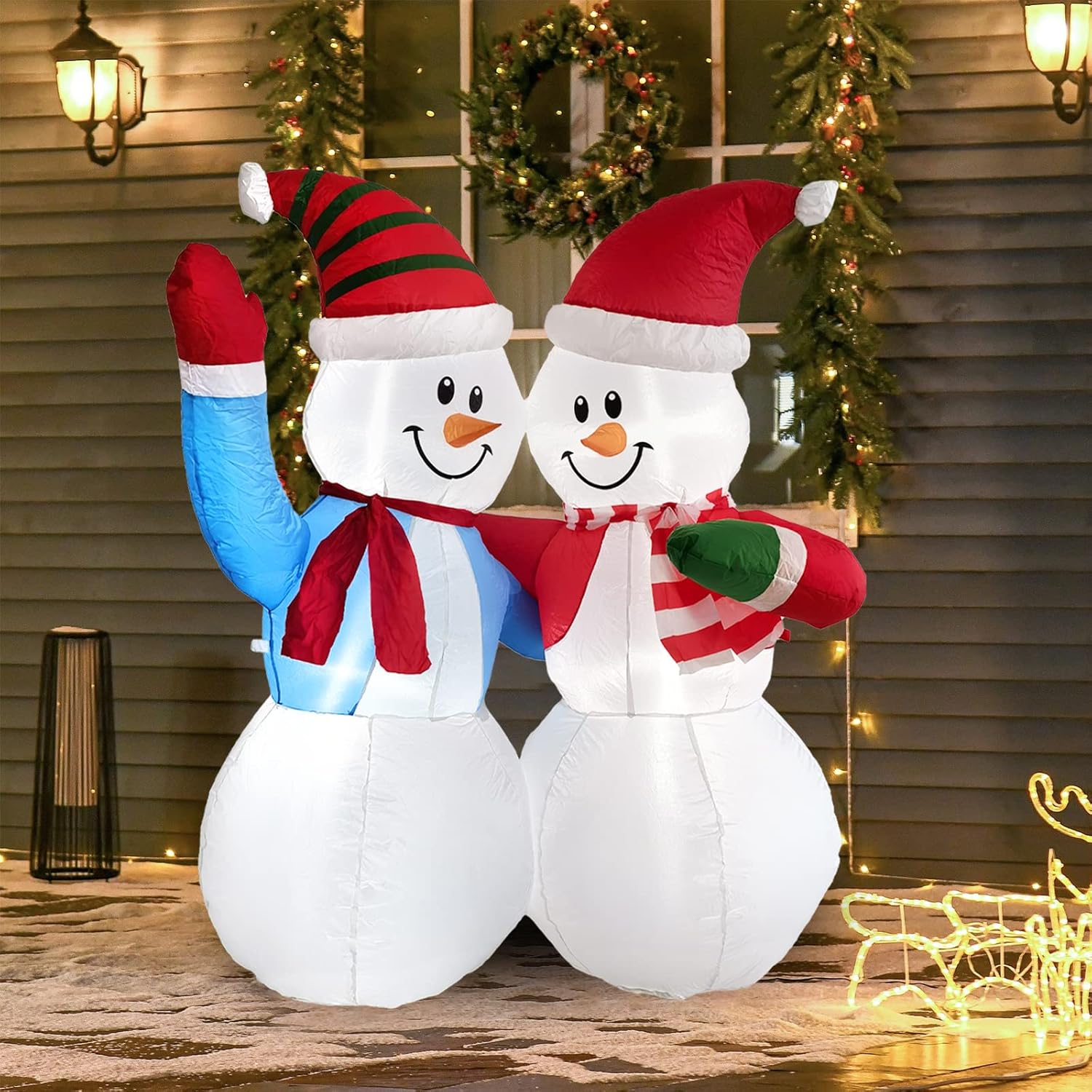 5 ft Pre-Lit Inflatable Christmas Snowman Couple,. Ideal for Other.