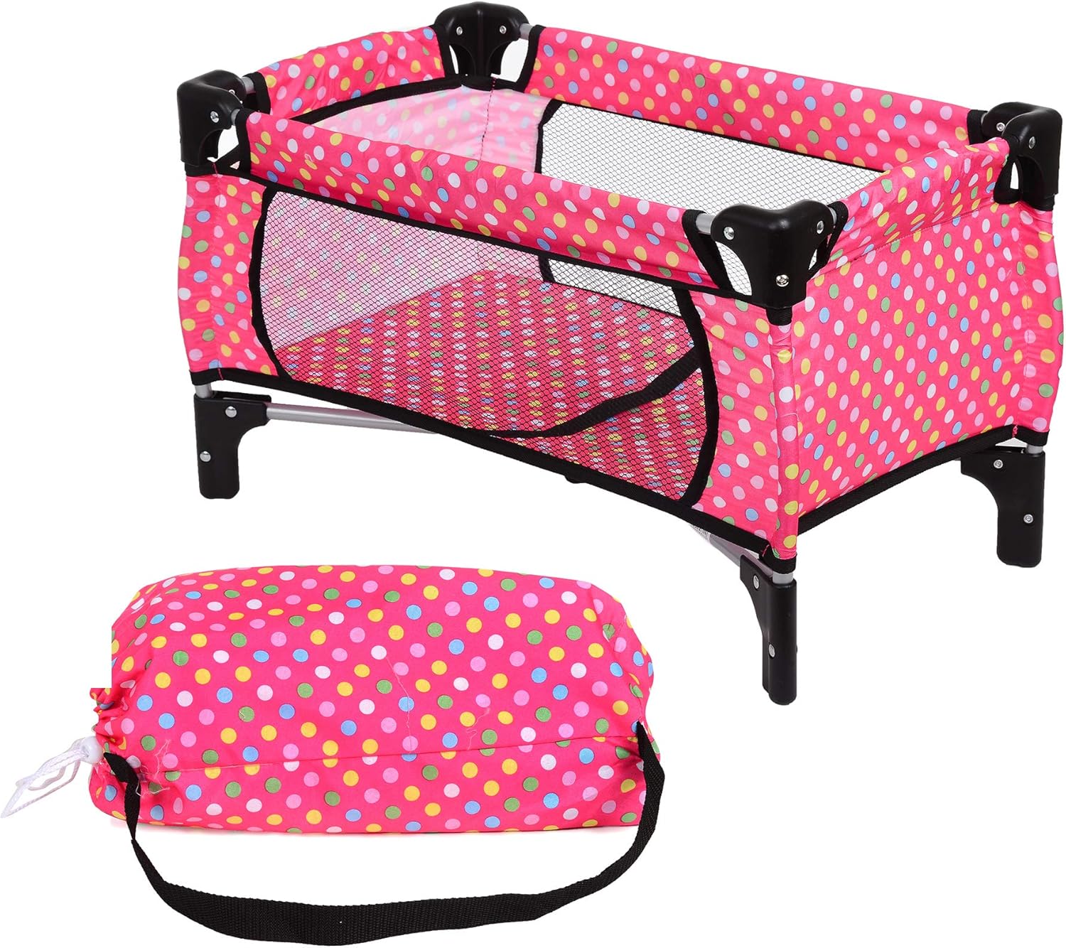 fash n kolor Doll Pack N Play Crib Polka Dot Desig. Ideal for Toys & Games > Dolls & Accessories > Doll Accessories > Strollers.