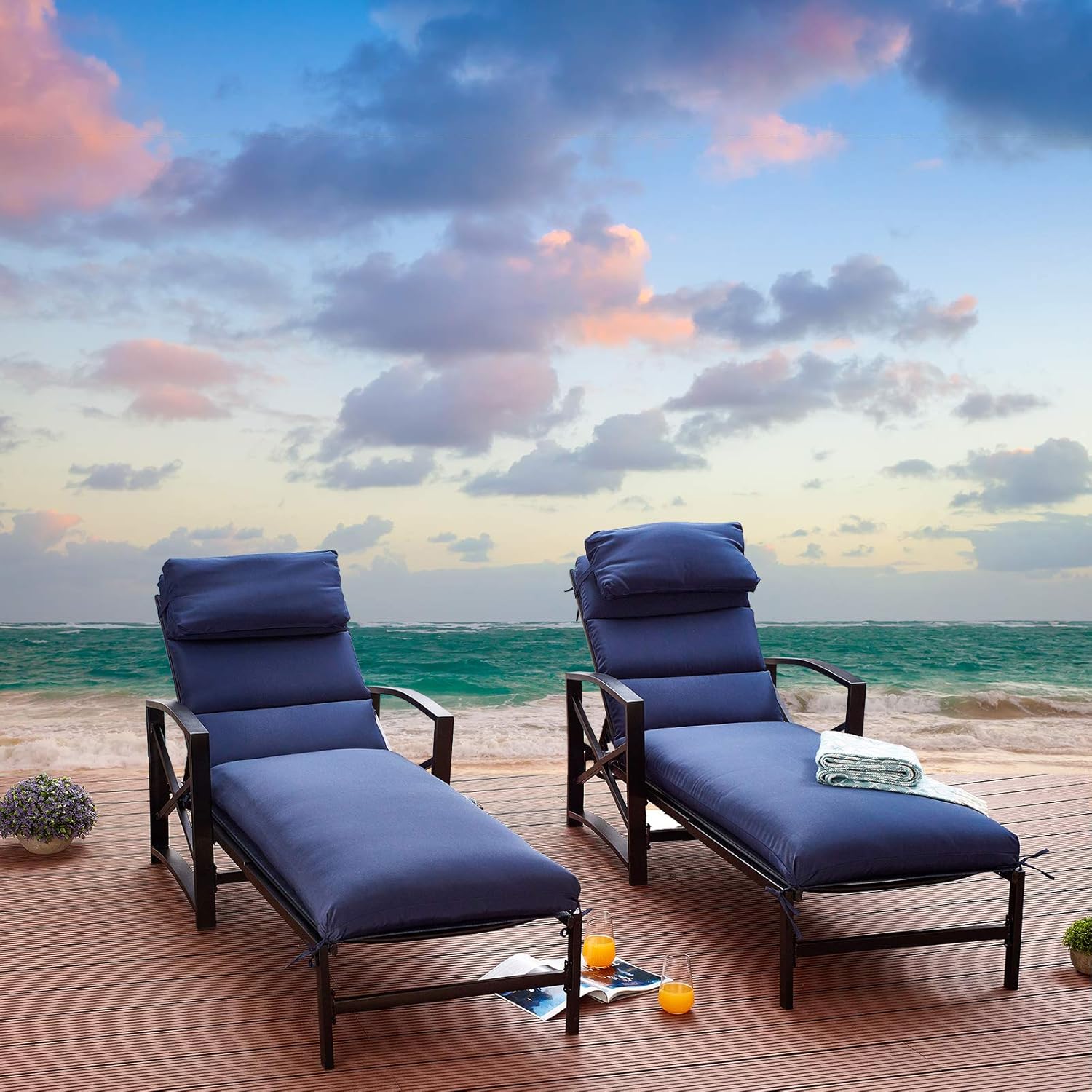 Festival Depot 2 Pieces Patio Outdoor Chaise Loung. Ideal for Lawn & Garden > Patio Furniture & Accessories > Patio Seating > Chairs > Lounge Chairs, Patio.