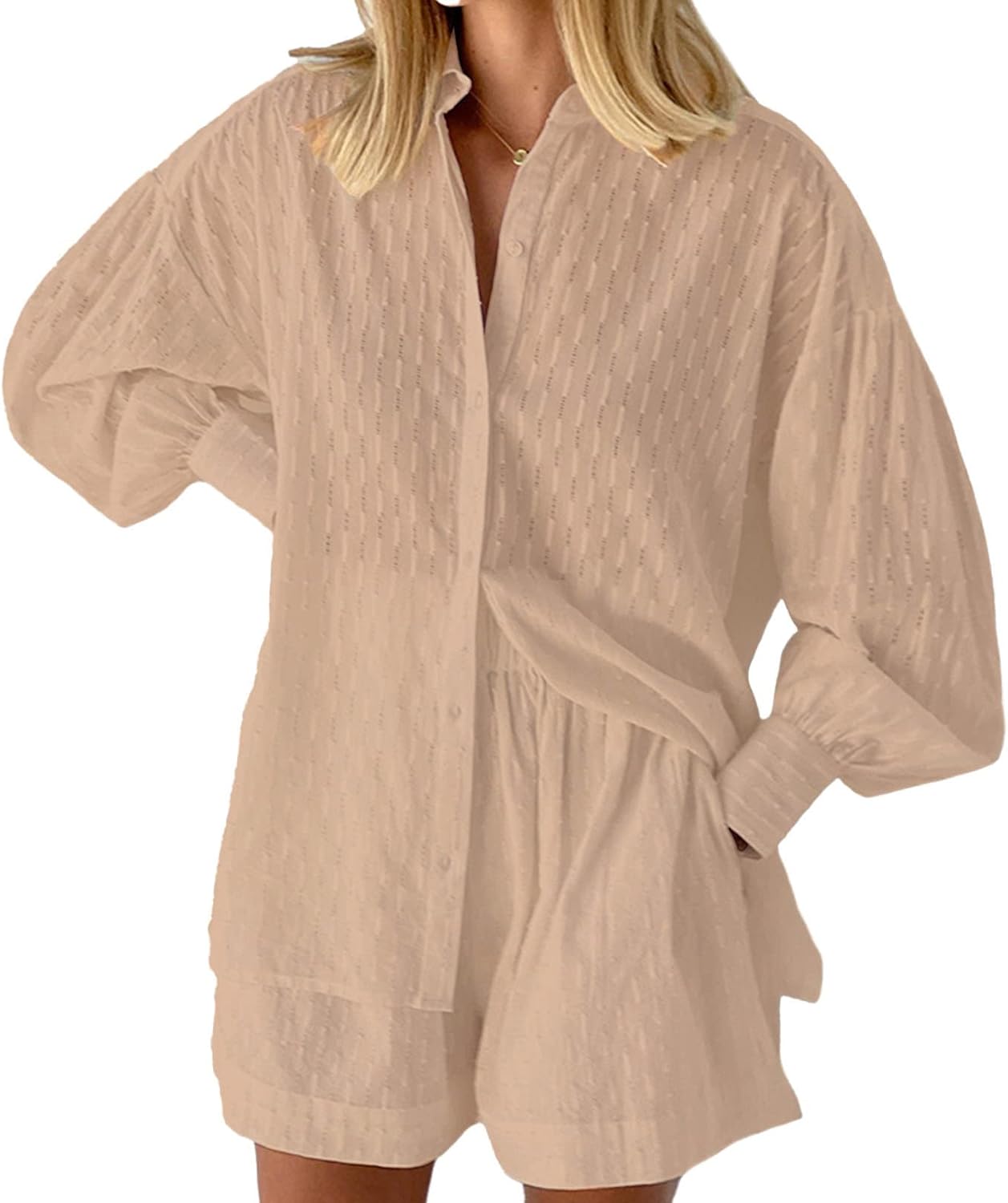 Fixmatti 2 Piece Casual Outfits Long Sleeve Button. Ideal for Shoes & Jewelry > Women > Clothing > Active > Sets > Active Sweatsuits, Clothing.