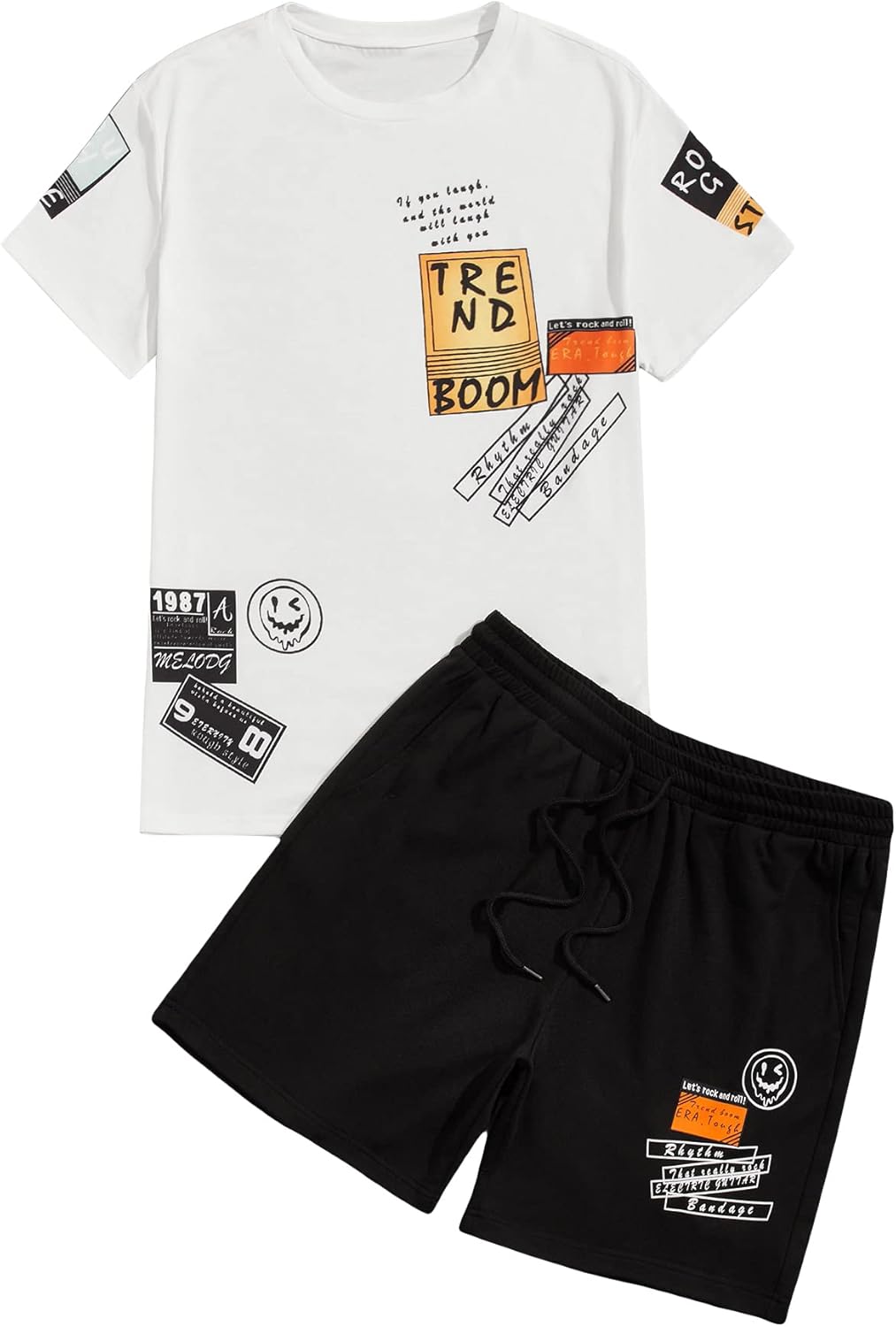 Floerns Men’s Graphic Print T Shirt Drawstring Wai. Ideal for Shoes & Jewelry > Men > Clothing > Active > Sets > Active Tracksuits, Clothing.