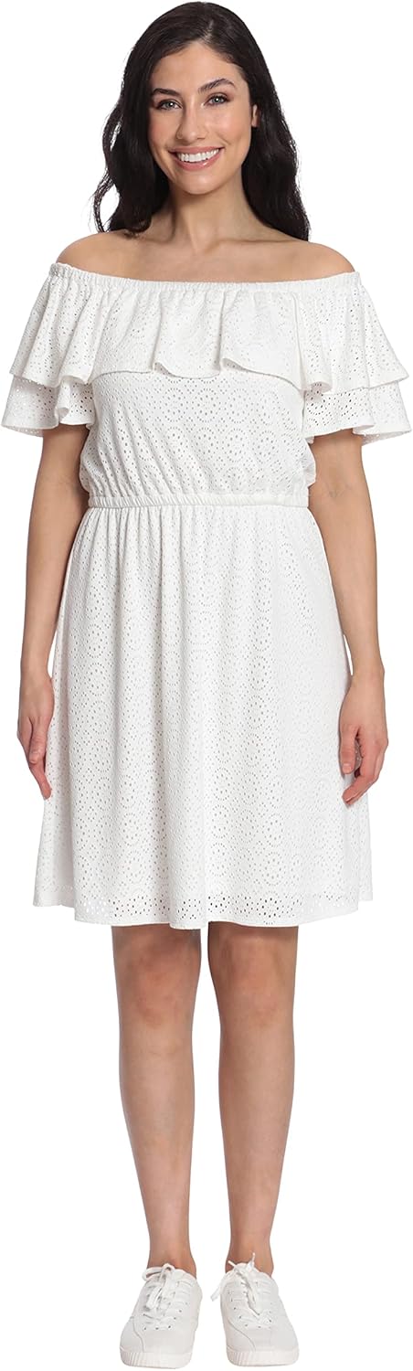 London Times Women’s Off The Shoulder Ruffle Sleev. Ideal for Shoes & Jewelry > Women > Clothing > Dresses > Casual, Clothing.