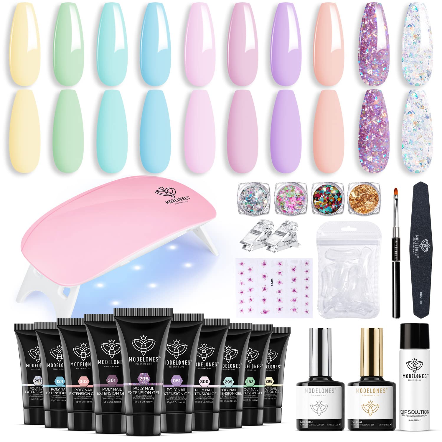 Modelones 59 Pcs Poly Nail Gel Kit Starter, 10 Col