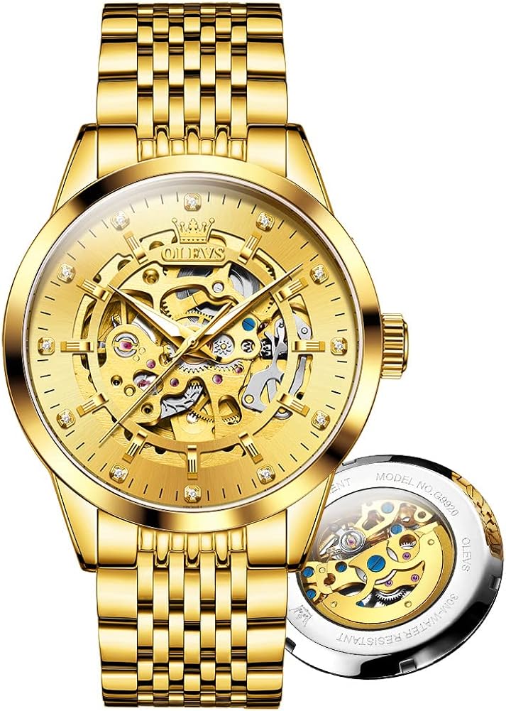 OLEVS Men’s Automatic Watch, Luxury Skeleton Large. Ideal for Clothing, Shoes & Jewelry > Women > Watches > Wrist Watches.