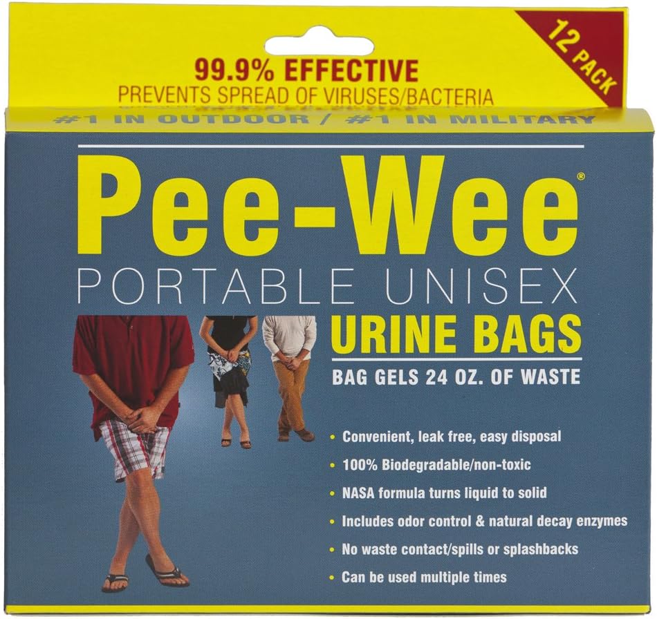 Ai AssistantHey I'm an AI Assistant how can I help you today?Pee-Wee by Cleanwaste Unisex Urine Bags-12 Pack (D. Ideal for Sports & Outdoors > Outdoor Recreation > Camping & Hiking > Personal Care > Hygiene & Sanitation.