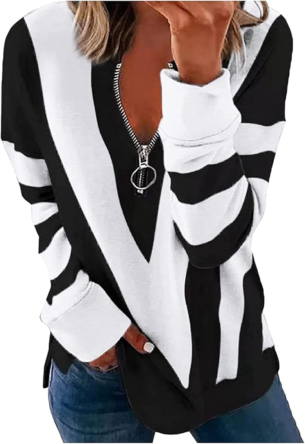 Quarter Zip Pullover Women Sweater Retro Graphic P. Ideal for Shoes & Jewelry > Women > Clothing > Active > Active Shirts & Tees, Clothing.