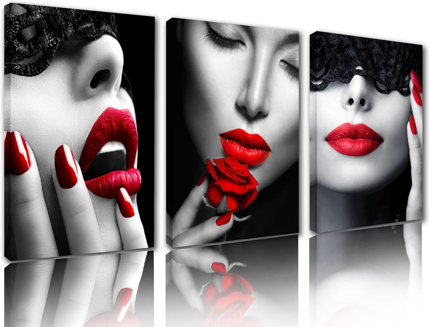 Room Wall Pictures Woman Portrait Red Lips Black W. Ideal for Home & Kitchen > Wall Art > Posters & Prints.