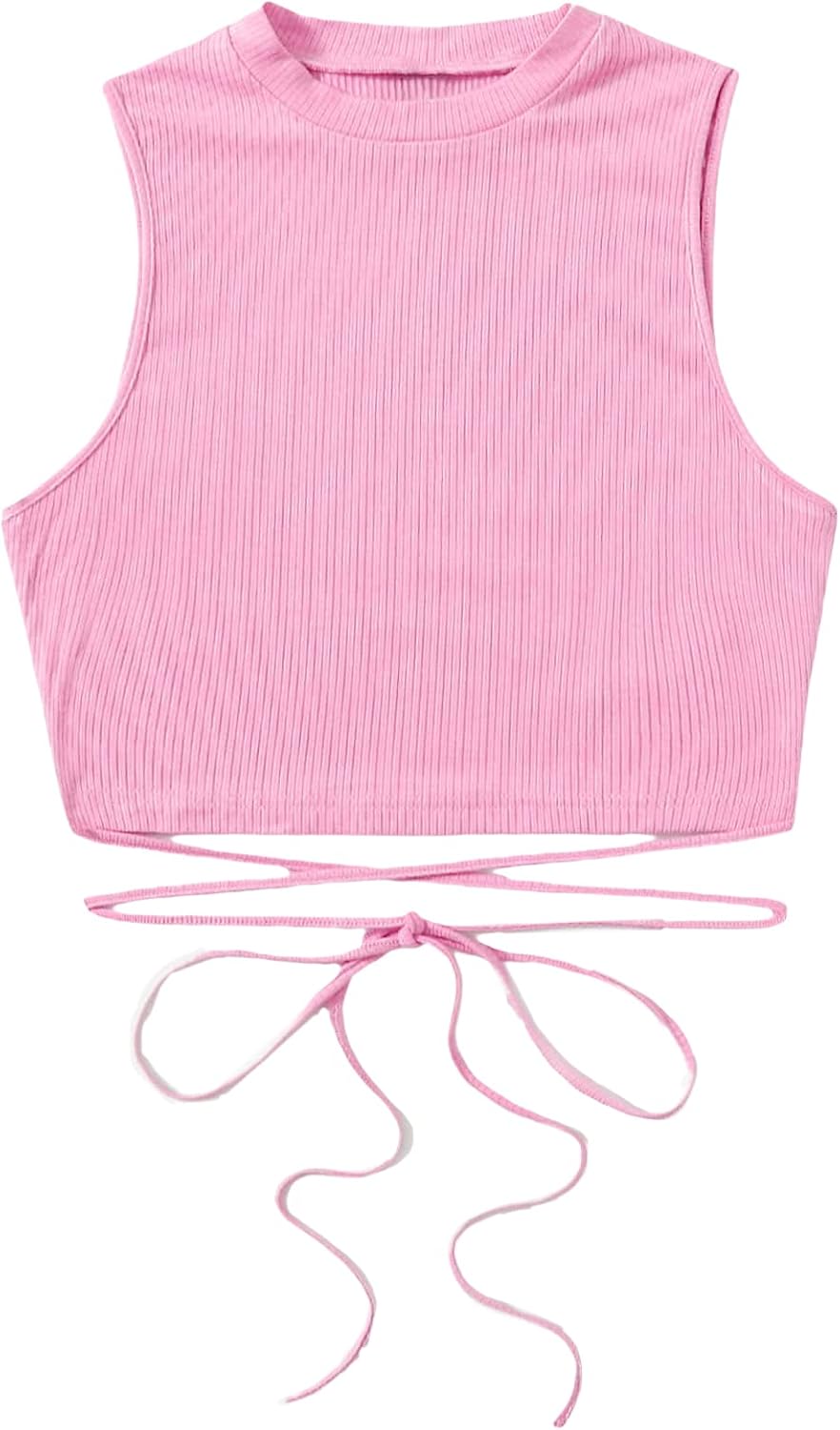 SheIn Women’s Crisscross Tie Back Crop Top Sleevel. Ideal for Other.