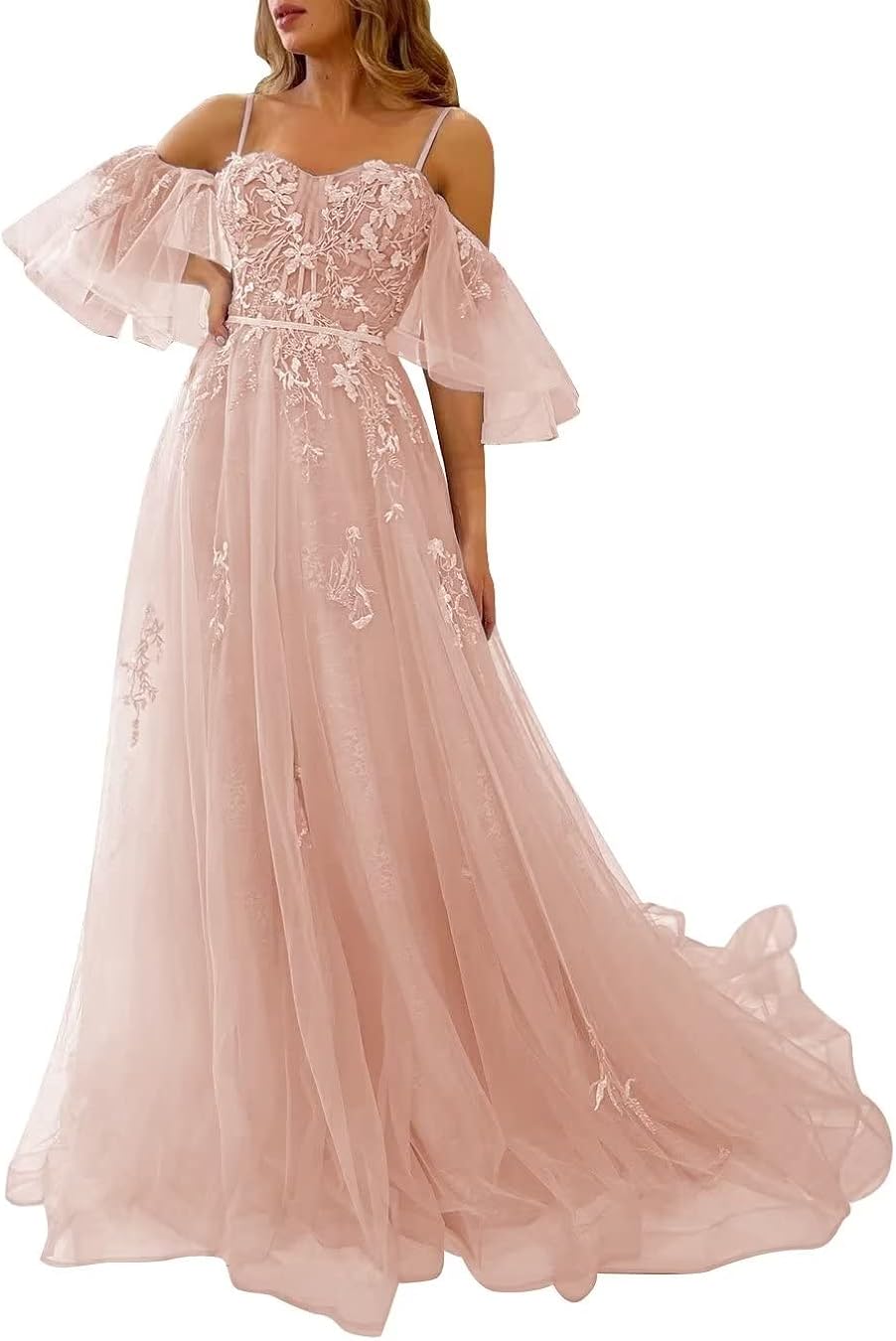 SHSUREVE Lace Appliques Tulle Prom Dresses for Tee. Ideal for Clothing, Shoes & Jewelry > Women > Clothing > Dresses.