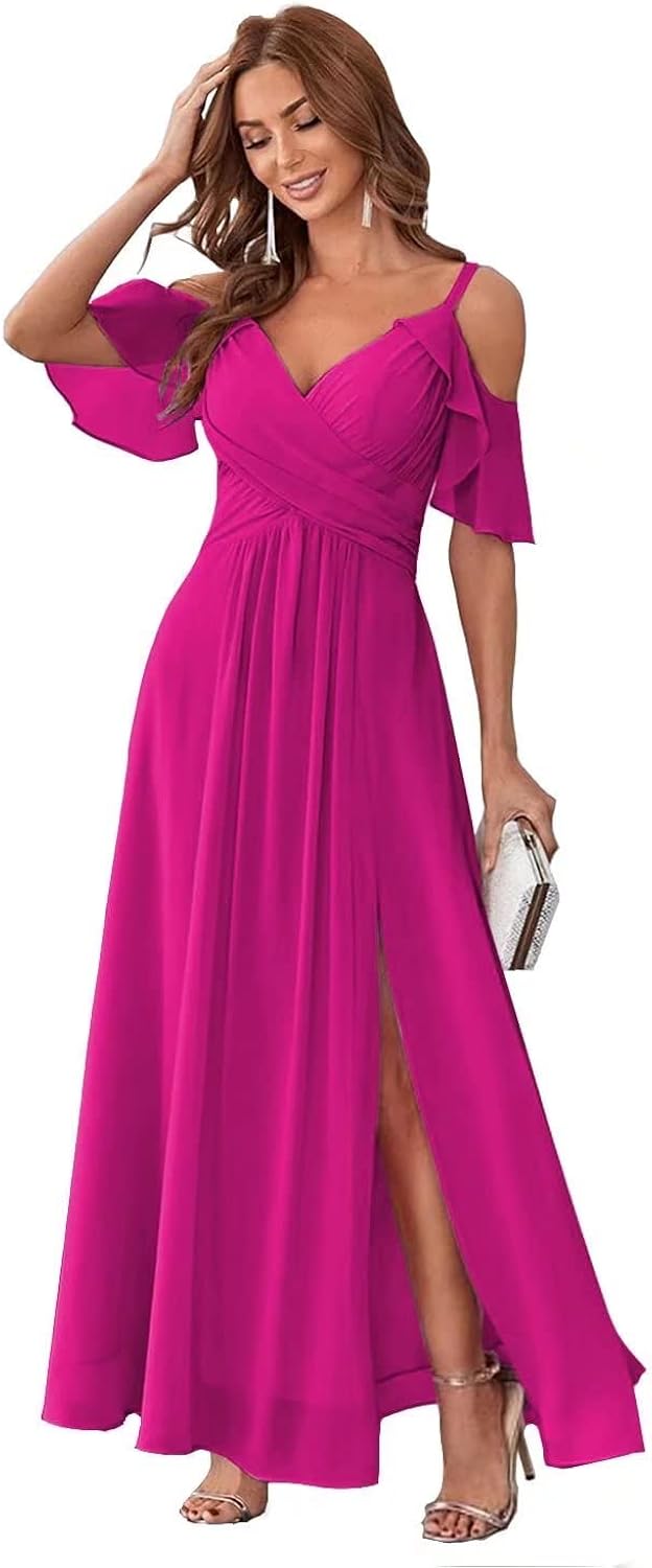 UZN Women’s Chiffon Cold Shoulder Bridesmaids Dres. Ideal for Clothing, Shoes & Jewelry > Women > Clothing > Dresses > Formal.