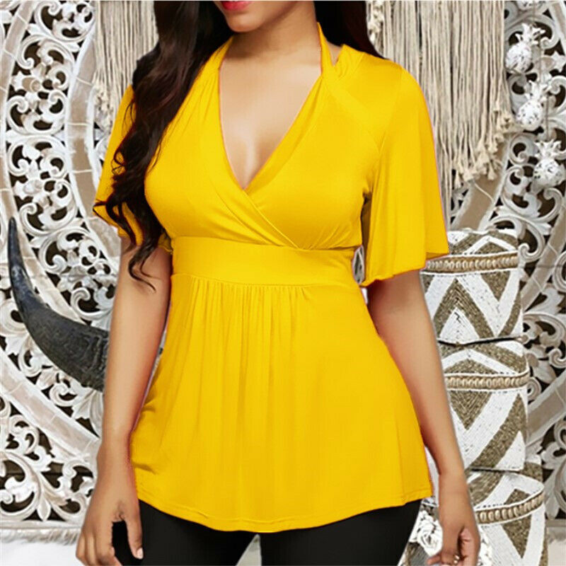 Women Wrap V Neck T-Shirt Peplum Tops Short Sleeve. Ideal for Clothing, Shoes & Accessories > Women > Women’s Clothing > Tops.