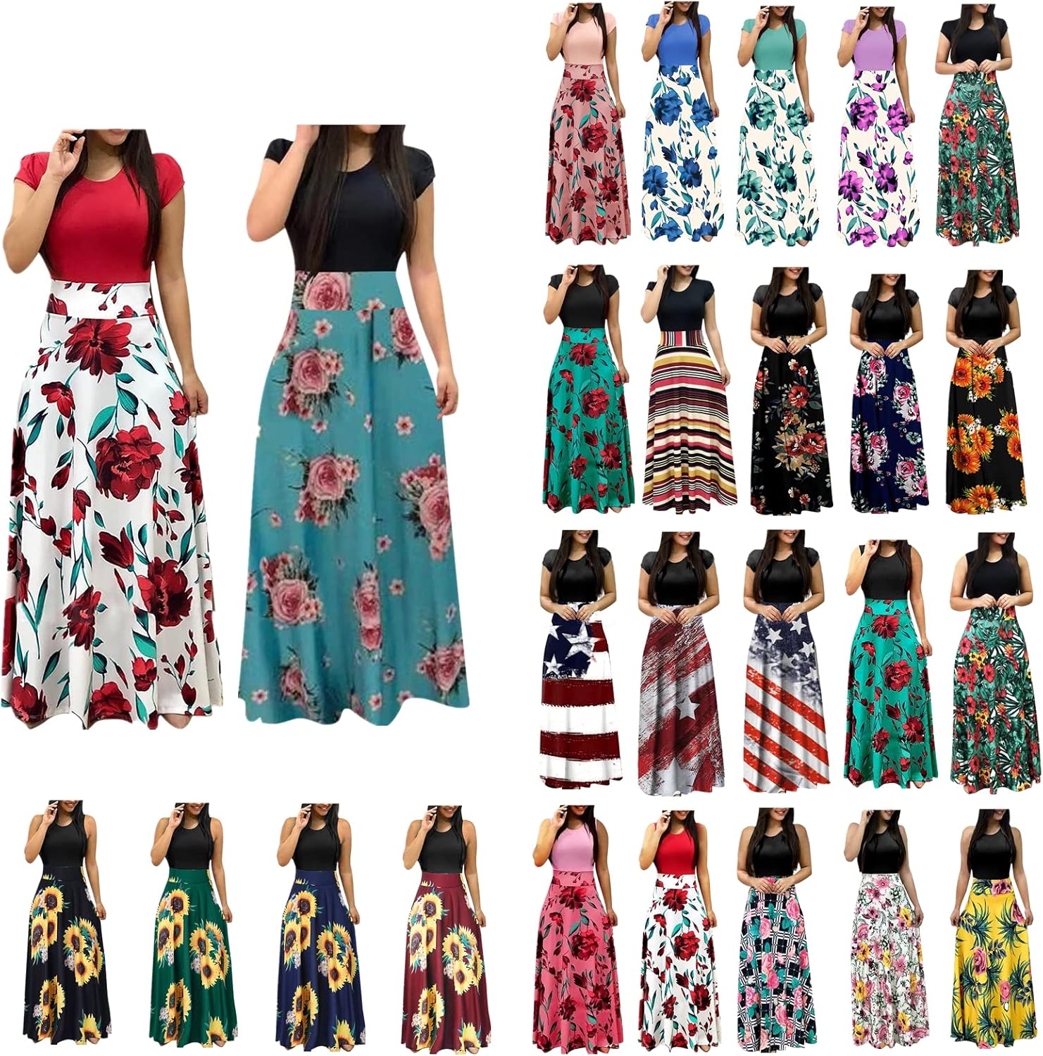 Womens Summer Maxi Dress Casual Short Sleeve/Sleev. Ideal for Shoes & Jewelry > Women > Clothing > Dresses > Casual, Clothing.