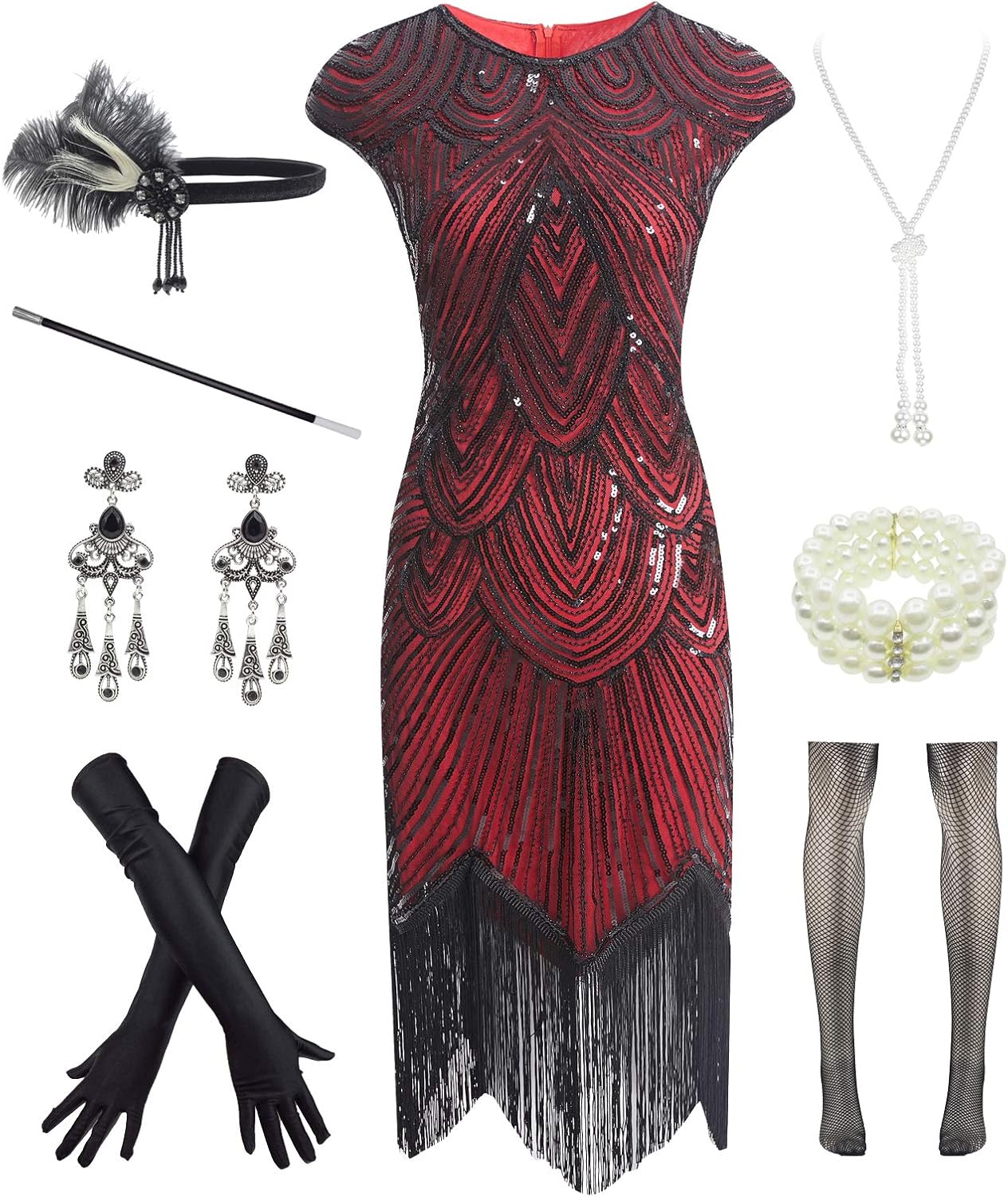 Womens Vintage Lace Fringed Gatsby 1920s Cocktail. Ideal for Shoes & Jewelry > Costumes & Accessories > Women > Accessories > Accessory Sets, Clothing.