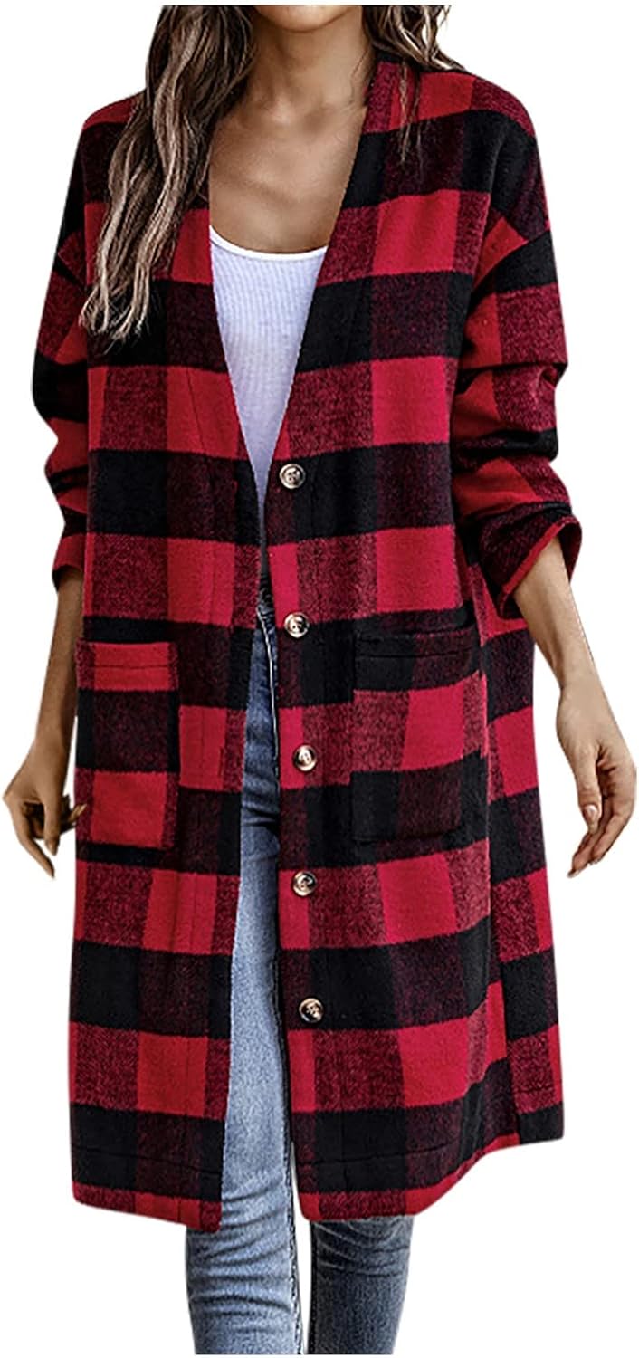 Women’s Winter Jacket Autumn and Woolen Plaid Pock. Ideal for Jackets & Vests > Casual Jackets, Clothing, Shoes & Jewelry > Women > Clothing > Coats.